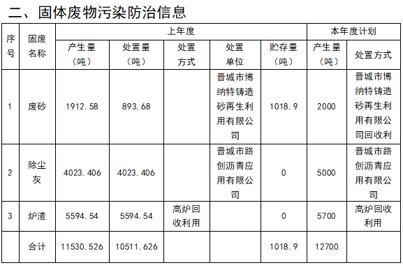 ENGLISH 根據(jù)《中華人民共和國(guó)固體廢物污染環(huán)境防治法》有關(guān)規(guī)定,我公司就2024年度產(chǎn)生、利用和處置固體廢物的名稱、類別、數(shù)量等相關(guān)信息進(jìn)行公開,接受社會(huì)監(jiān)督。